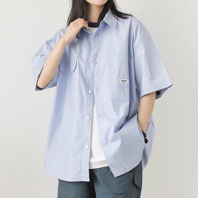 さらりとした肌触りで春夏の着こなしにぴったり。フロントにあしらった2つのポケットがさりげないアクセントに。1枚でも羽織りでも使える万能アイテムで、アウトドアからタウンユースまで活躍。