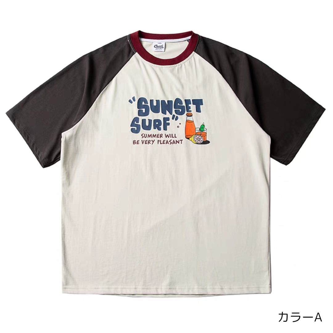 SUNSET SURFラグランTシャツ