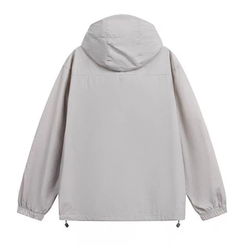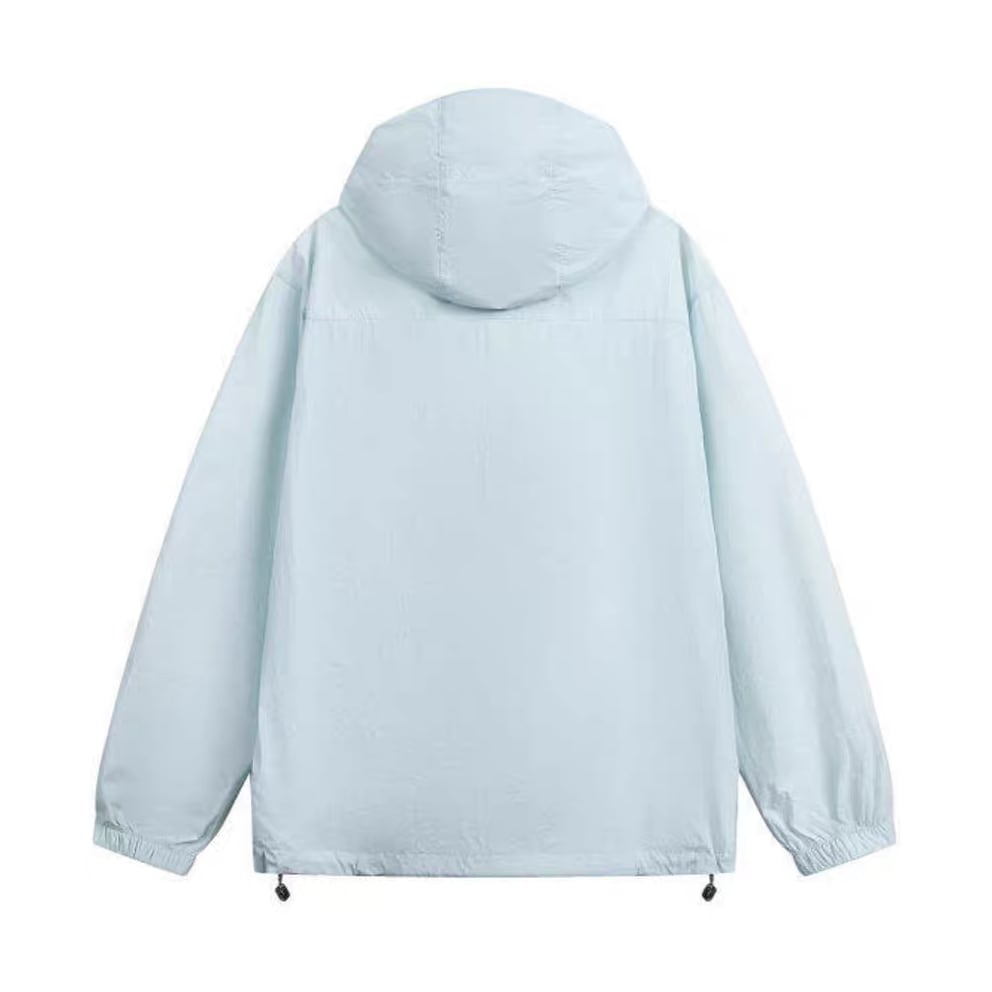 さらりと羽織れるナイロン素材に、日焼け止め機能をプラス。フード付きで首元までしっかりカバーし、アウトドアや街歩きにもぴったり。