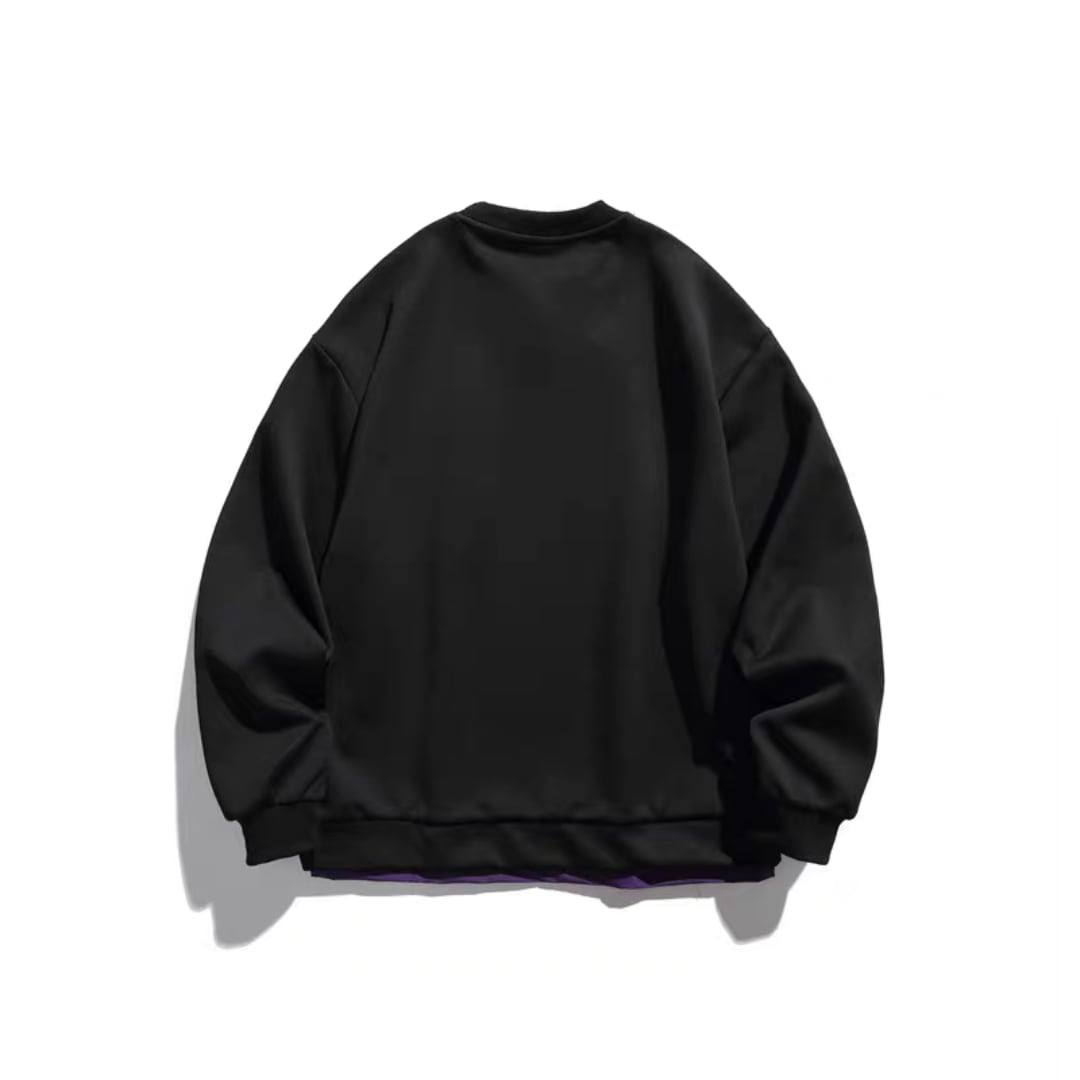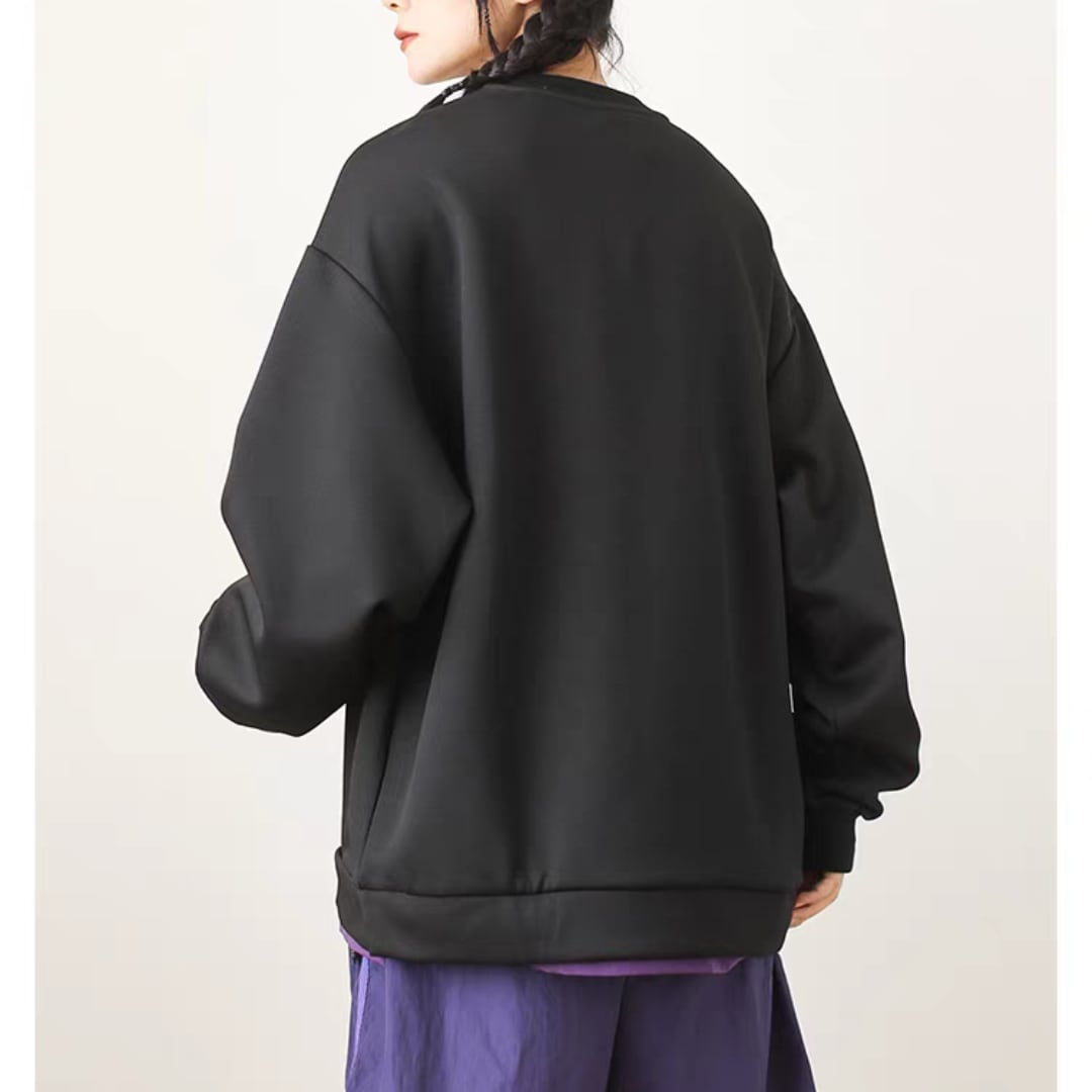 胸元には配色が目を引くジップ付きナイロンポケットを配置し、スタイリングのアクセントに。ユニセックスで着用可能なオーバーサイズシルエット。