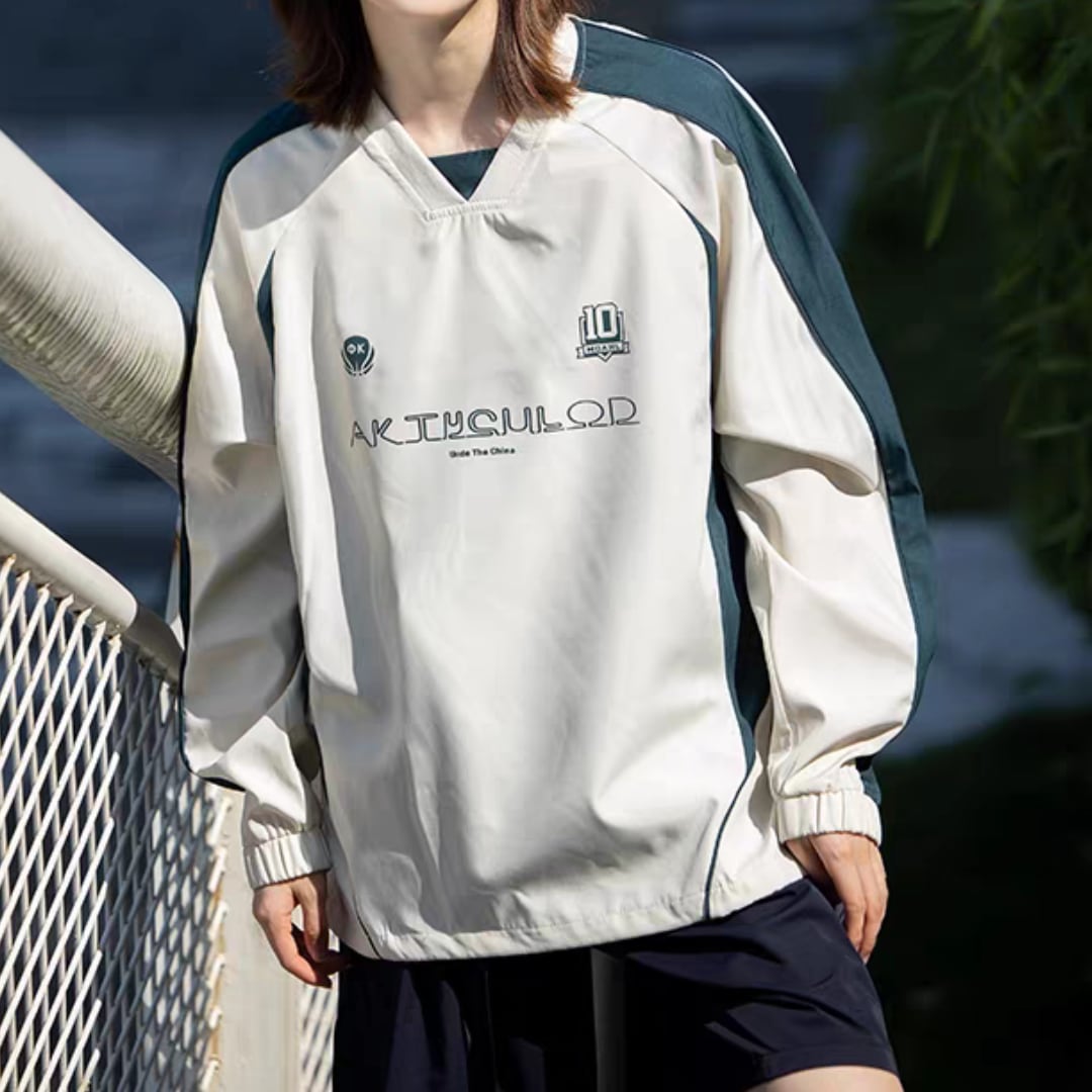 スポーティなカラーブロックデザインが目を引くプルオーバー。