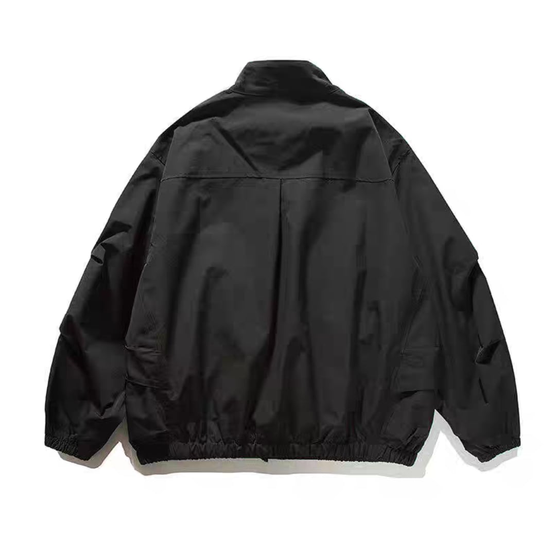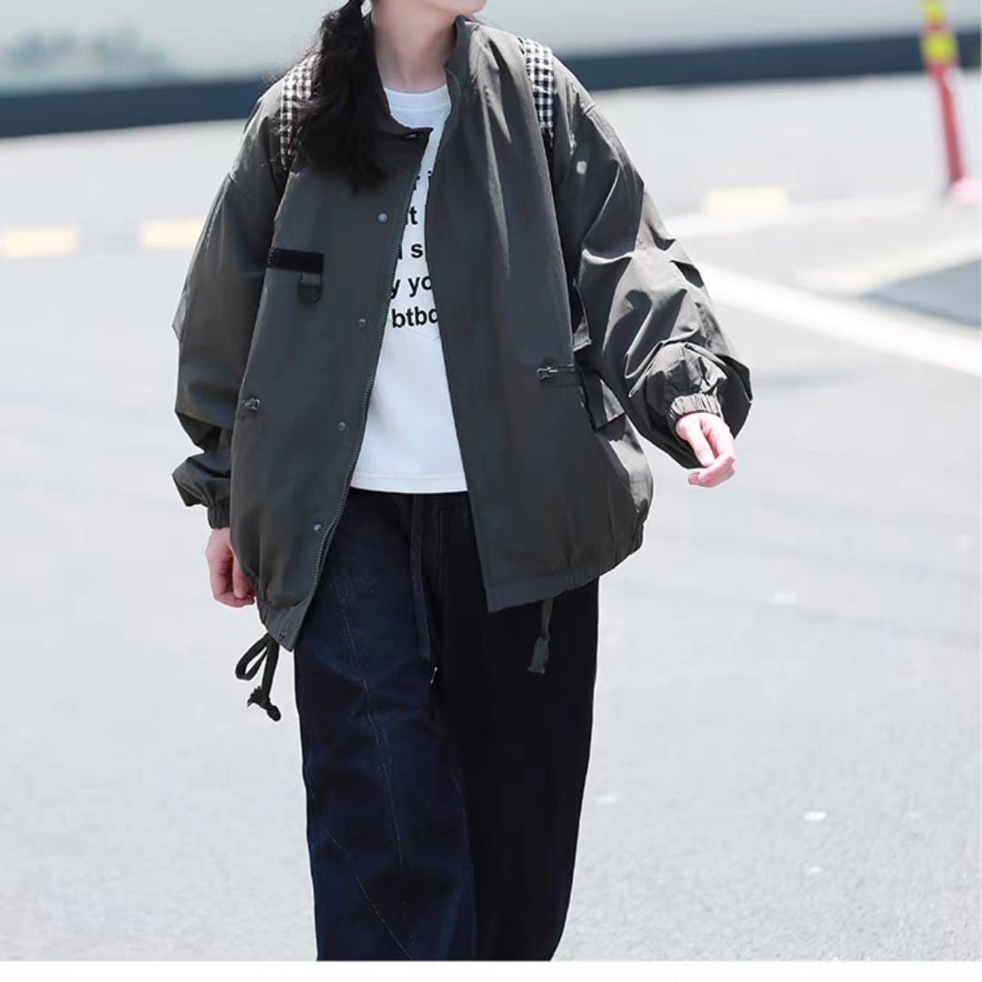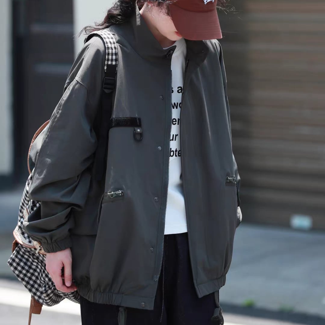 フロントにはジップ付きの大きめポケットを配置し、実用性とデザイン性を兼備。裾はドローコード仕様でシルエット調整が可能です。カジュアルコーデはもちろん、アウトドアやデイリーユースにも活躍する万能アウターです。
