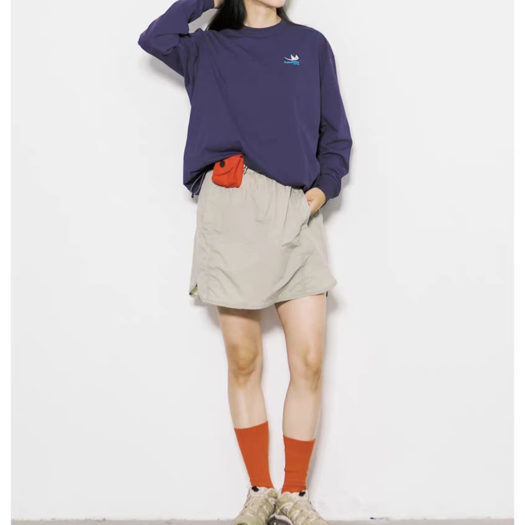 胸元にはシンプルなロゴ刺繍を施し、さりげないアクセントに。裾にはドローストリングを配し、シルエットをアレンジ可能。ゆったりとしたサイズ感で、ラフに着こなしつつも洗練された雰囲気を演出します。