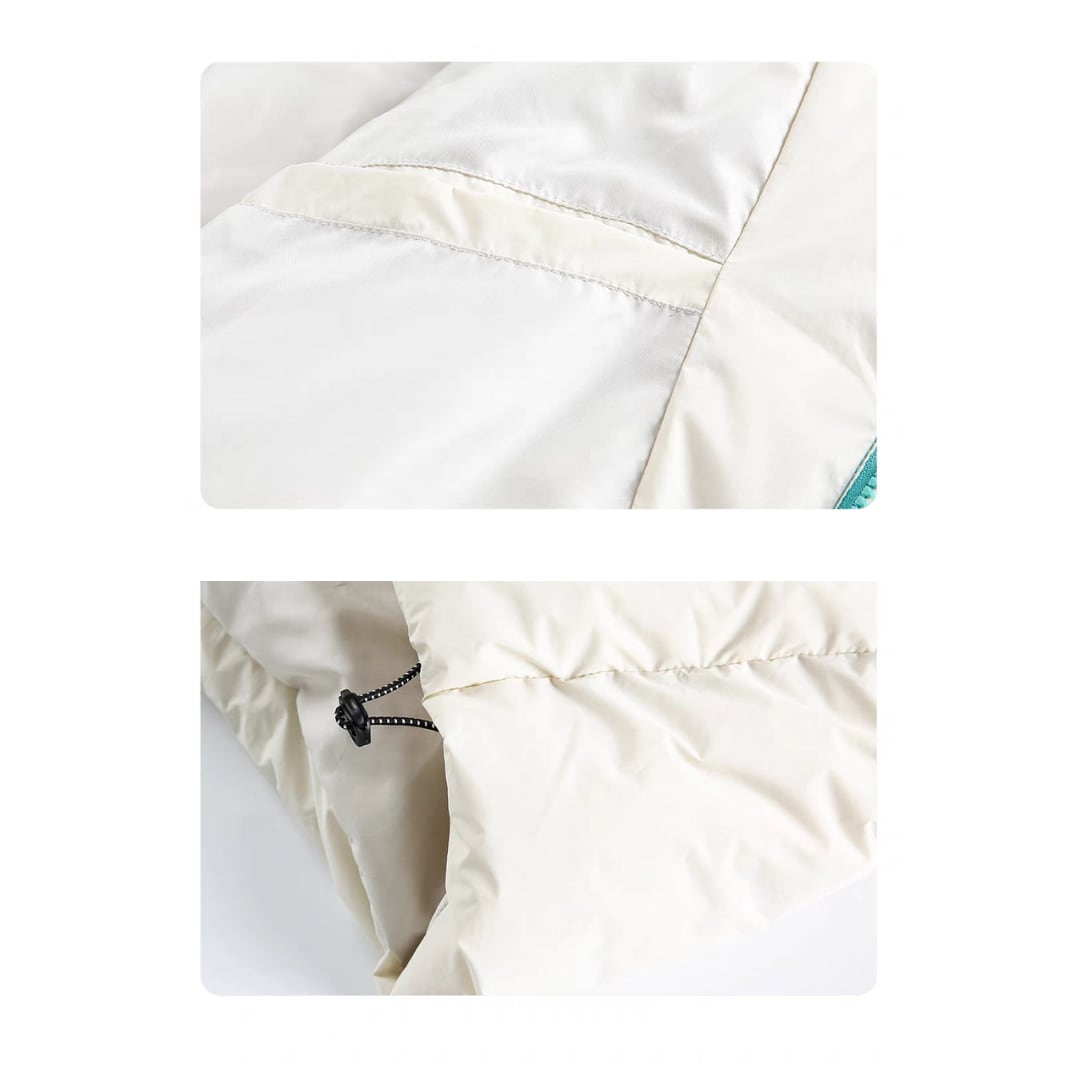 アウトドアシーンでも快適なホワイトダックダウンジャケットです。