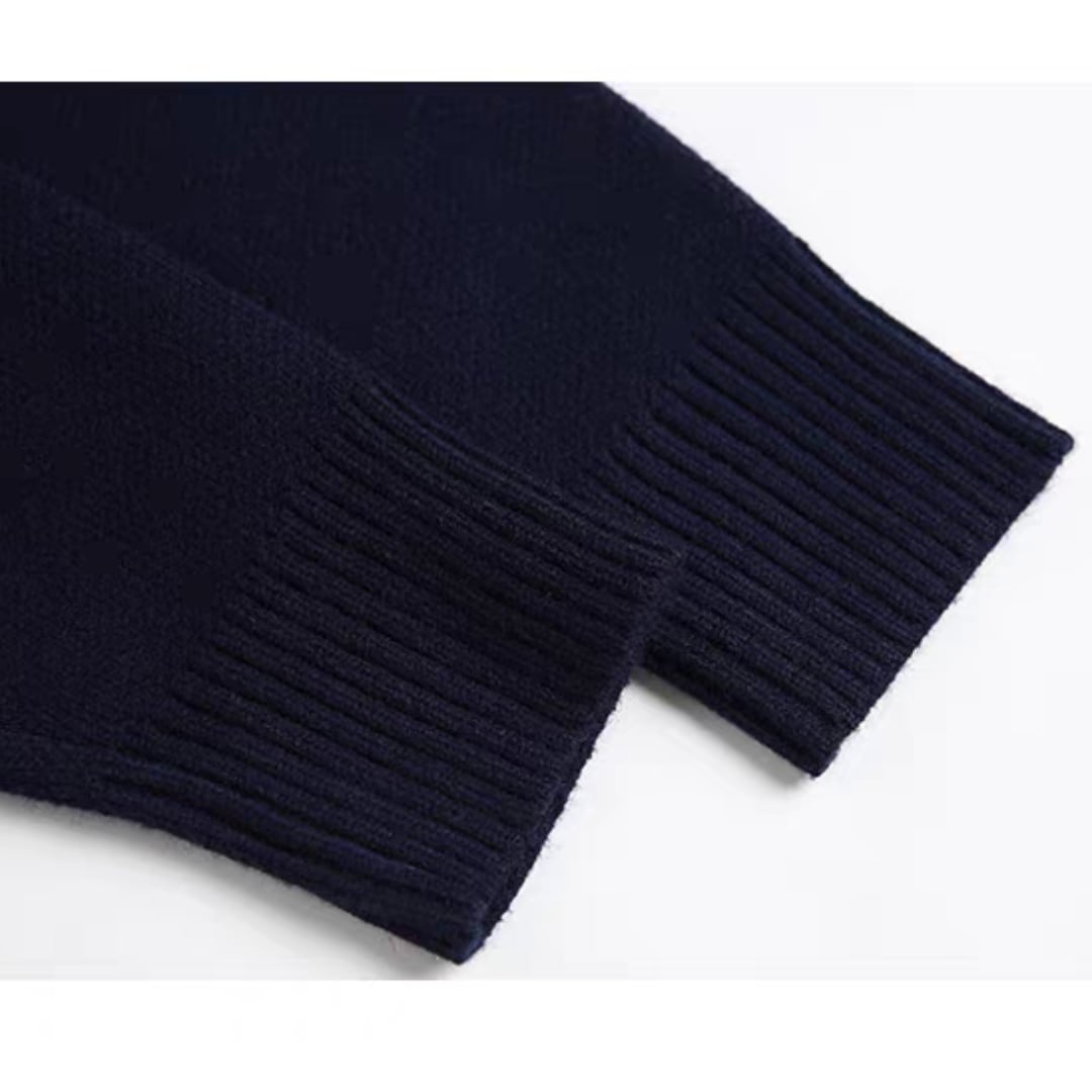 ゆったりシルエットのバイカラーニットトップス。