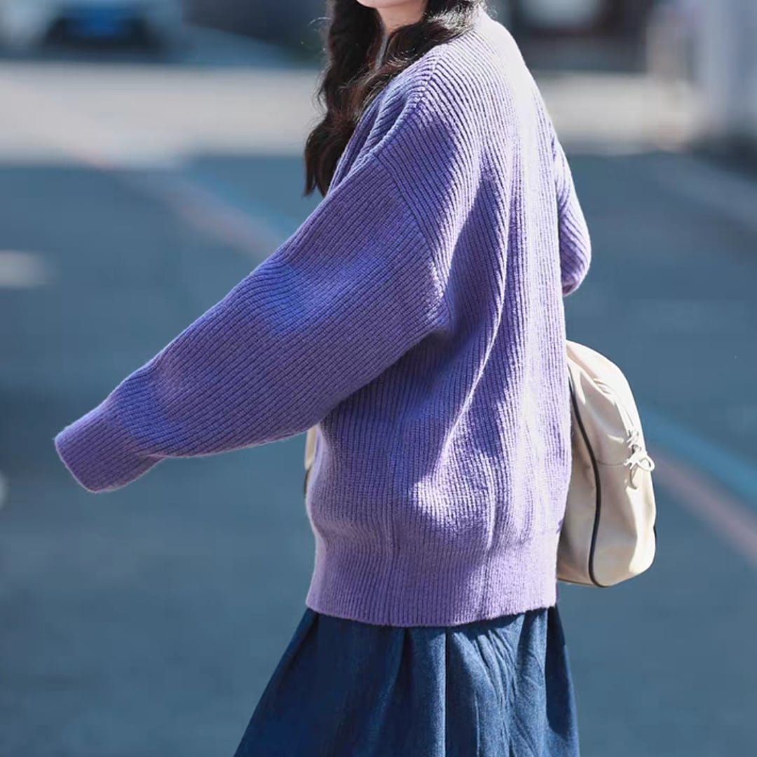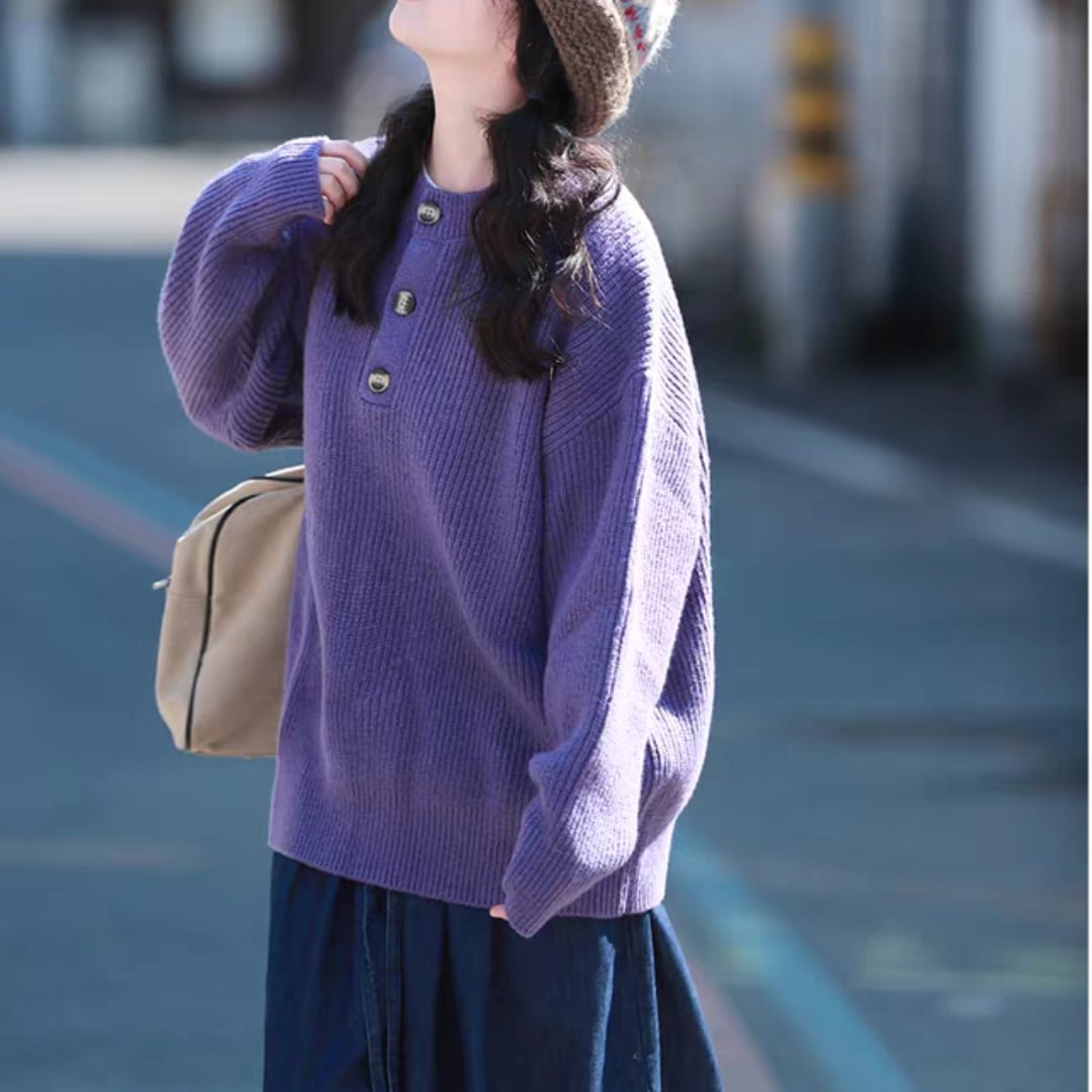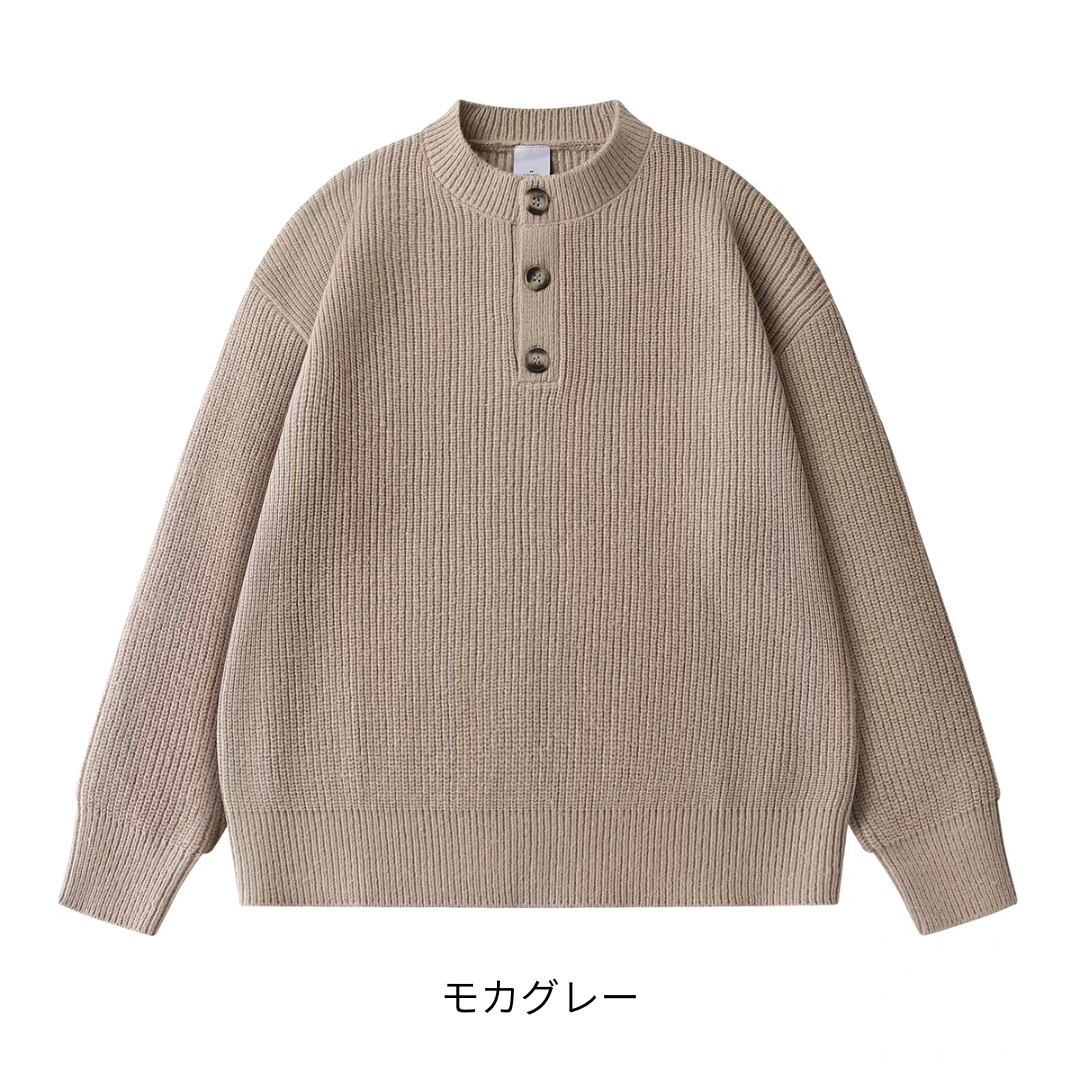胸元のボタンデザインがアクセントになり、シンプルながらも大人の抜け感を演出します。