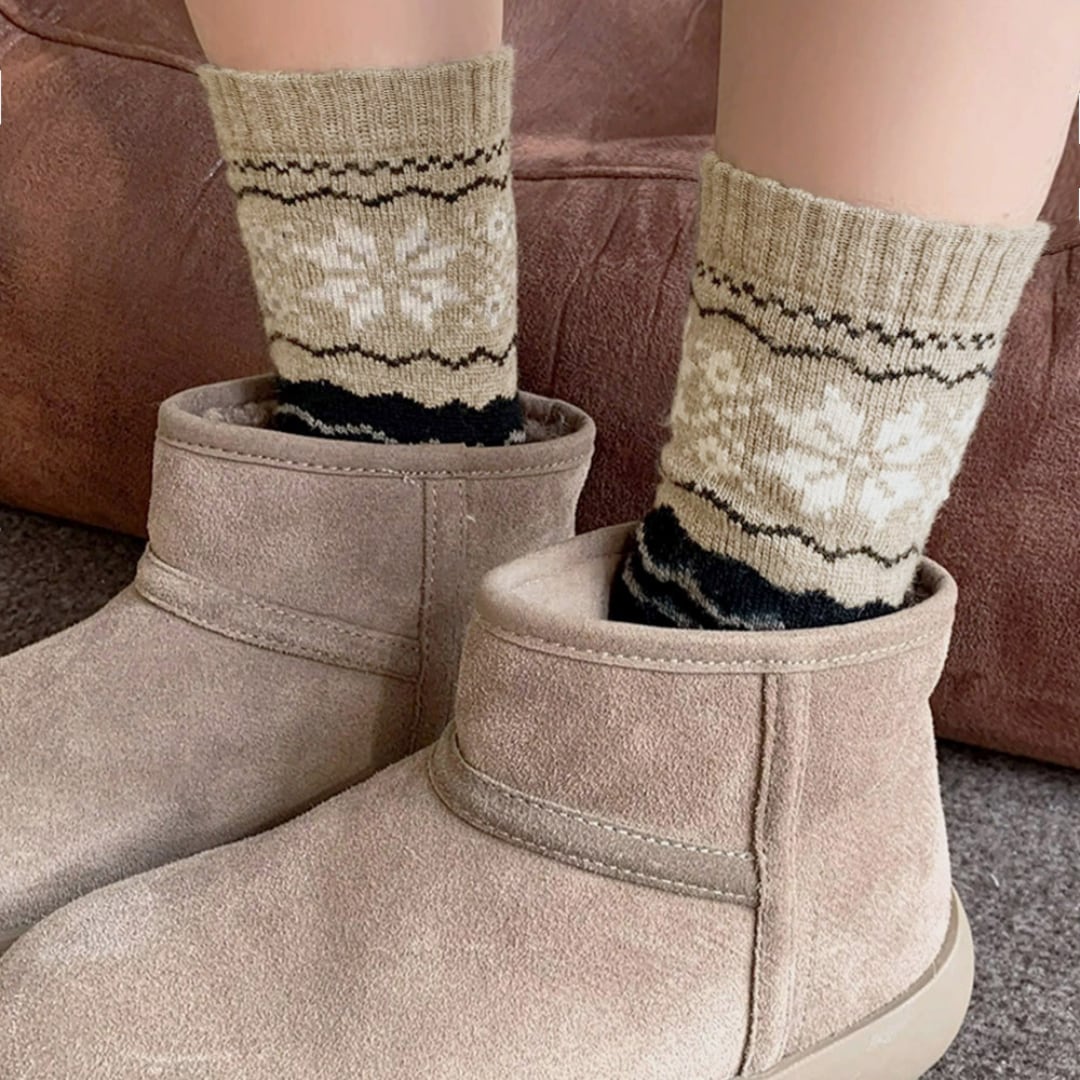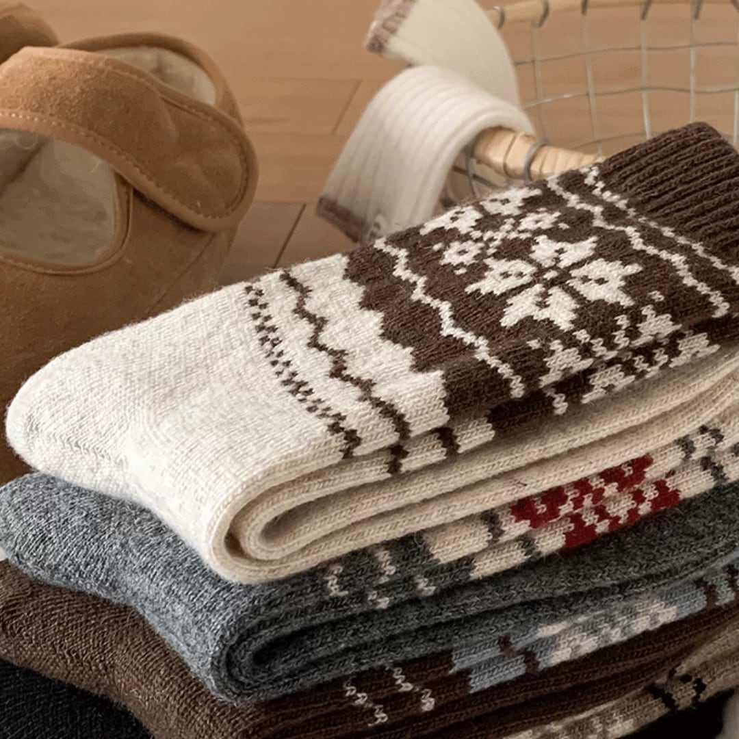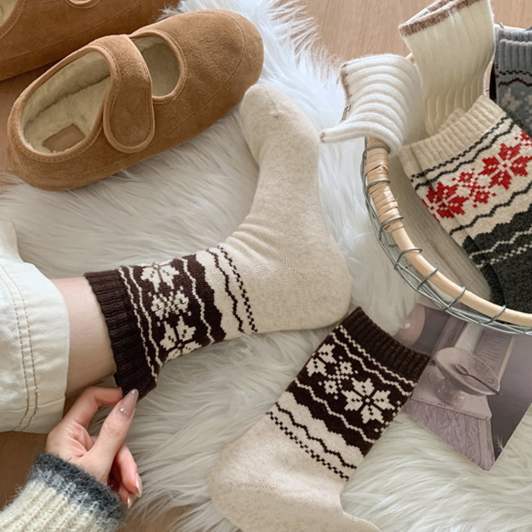 やわらかな風合いのノルディック柄ソックスを4色セットでお届けします。