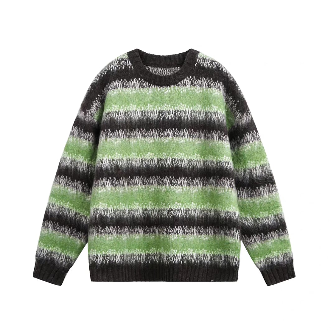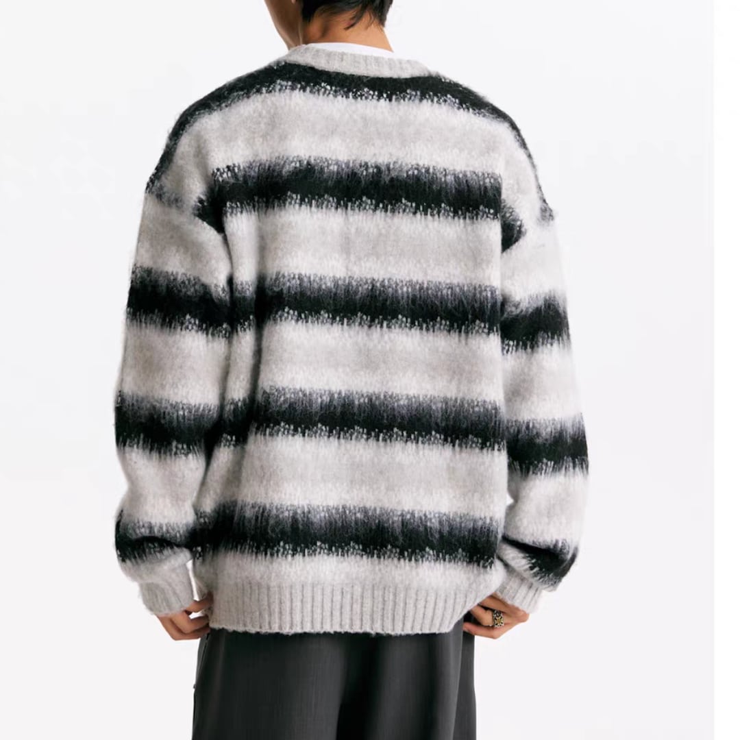 ふんわりとした起毛感が魅力の、あたたかみたっぷりのボーダーニット。