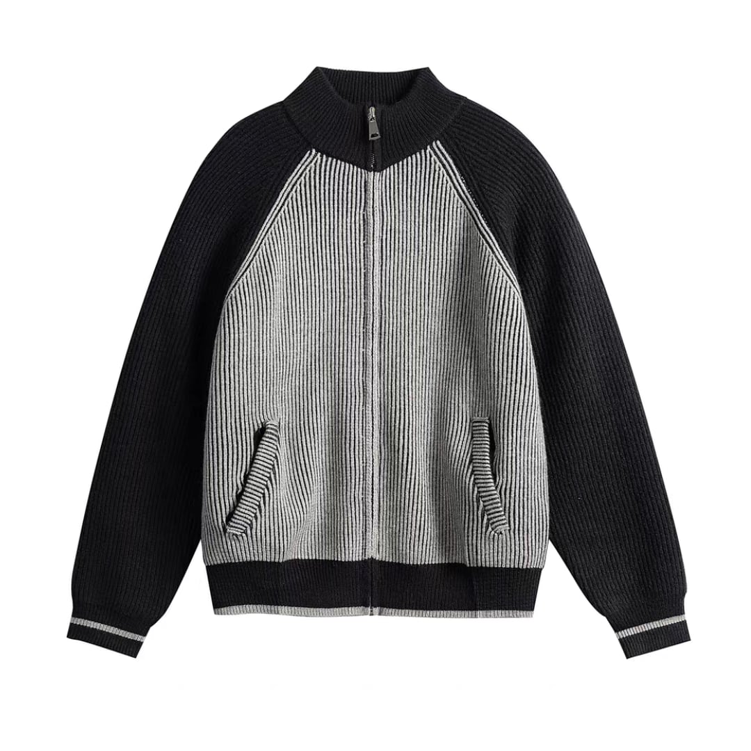 リブ編みの柔らかな素材感が着心地抜群のカーディガンです。シンプルながらも配色デザインがポイントとなり、さまざまなスタイルに合わせやすい一枚です。