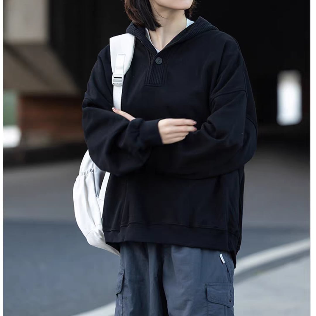 裏起毛ヘンリーネックフーディ