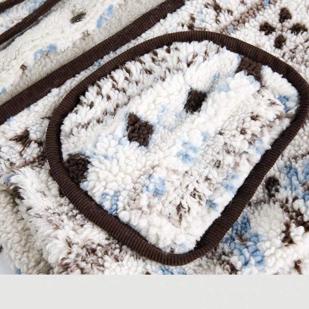 袖と背面は無地のボアで切り替え、柄とのバランスが◎