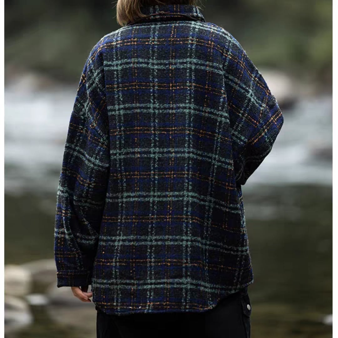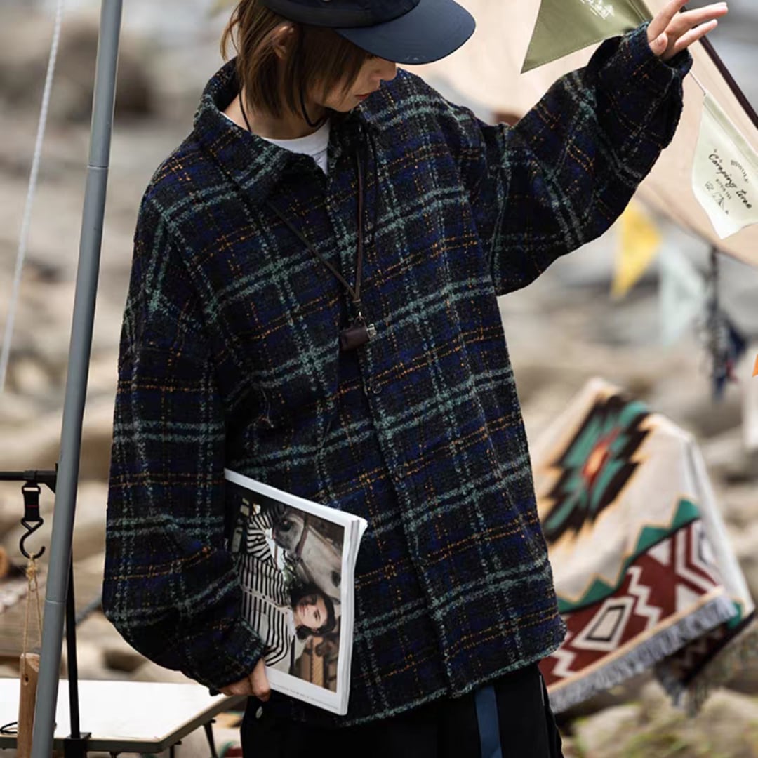 クラシックなチェック柄が印象的なシャツジャケット。