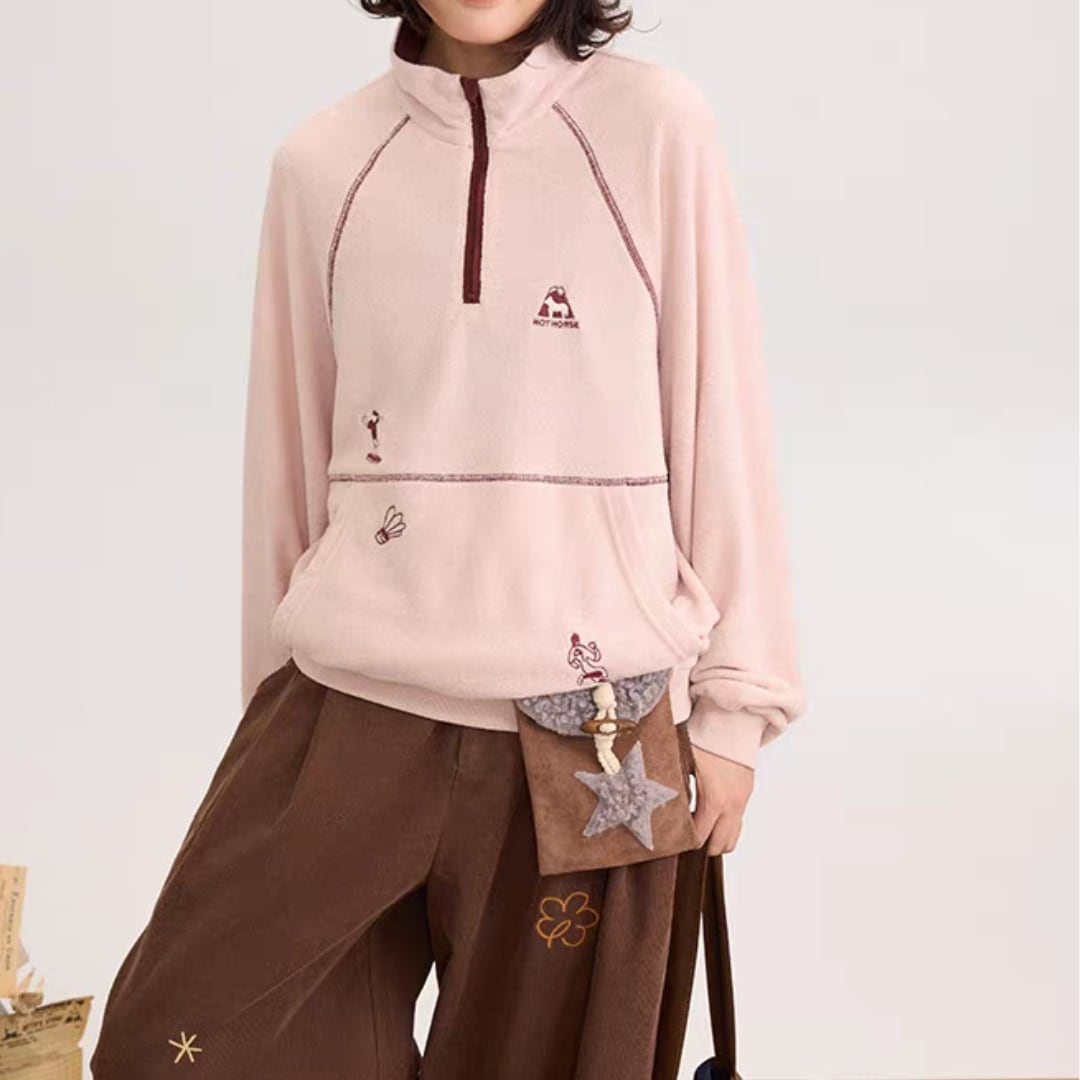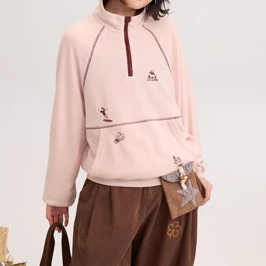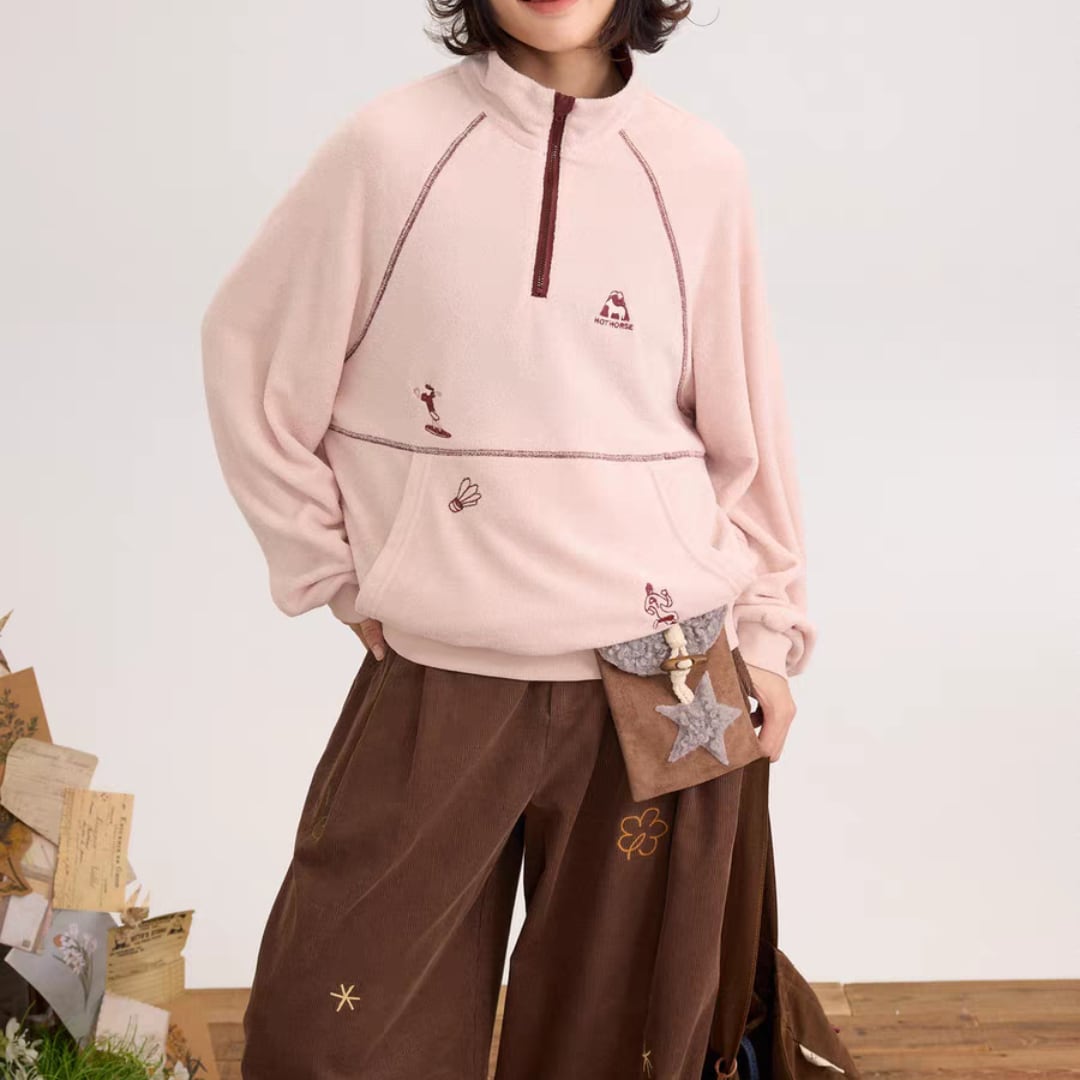ハーフジップフリースプルオーバー。