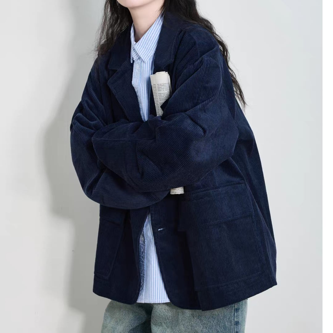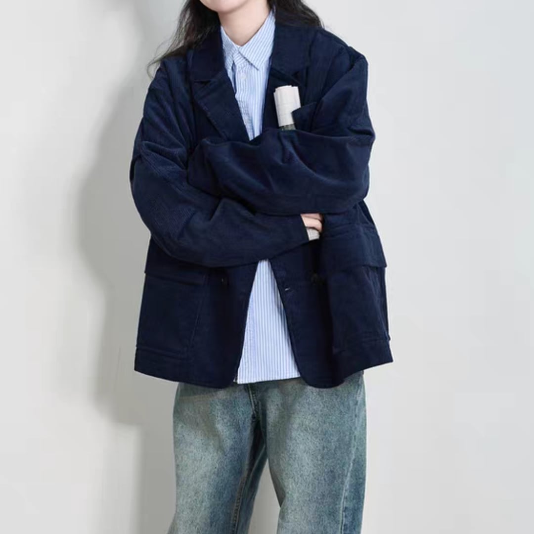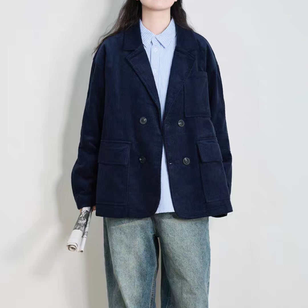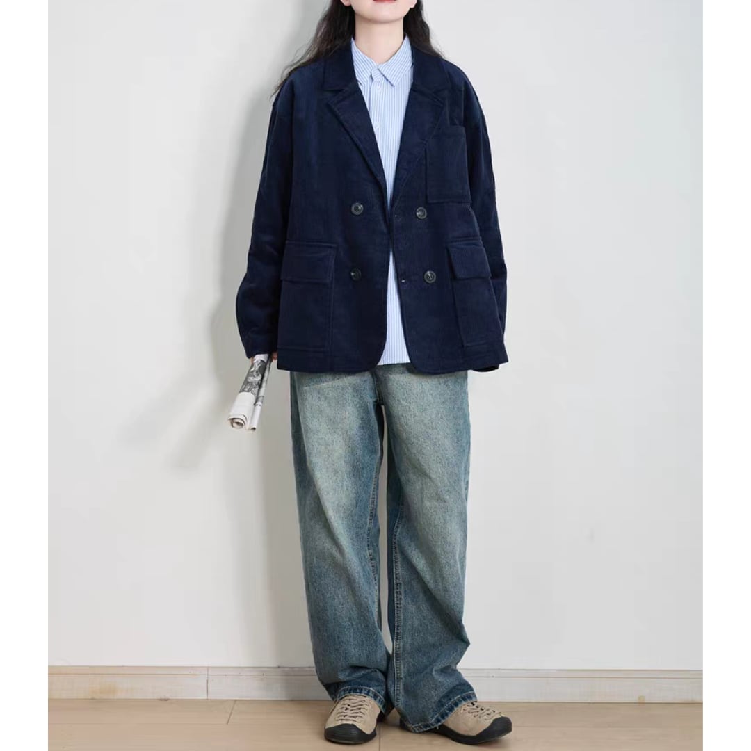 ゆったりとしたシルエットとダブルボタン仕様で、