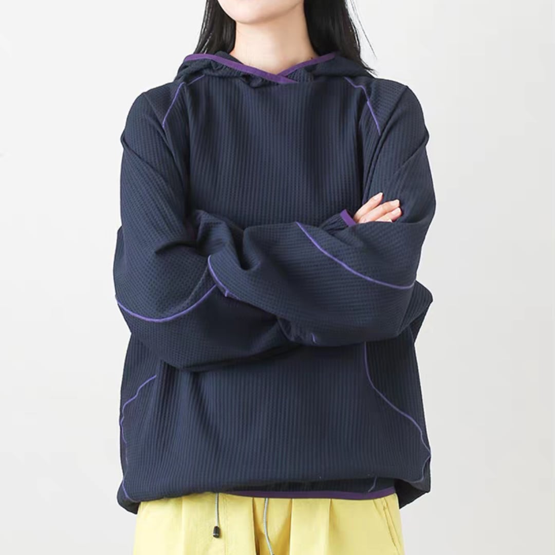 凹凸のあるワッフル調素材がさらっとした着心地を生み、