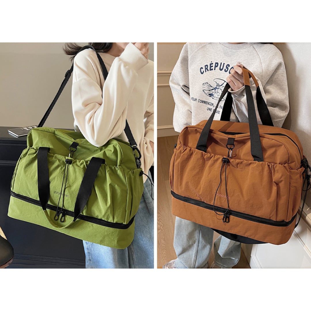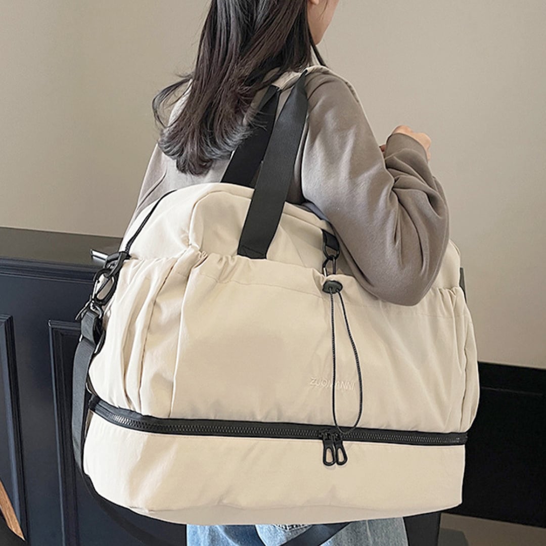ハンドルとショルダーストラップ付きの2WAY仕様で、持ち運び方を選べる。