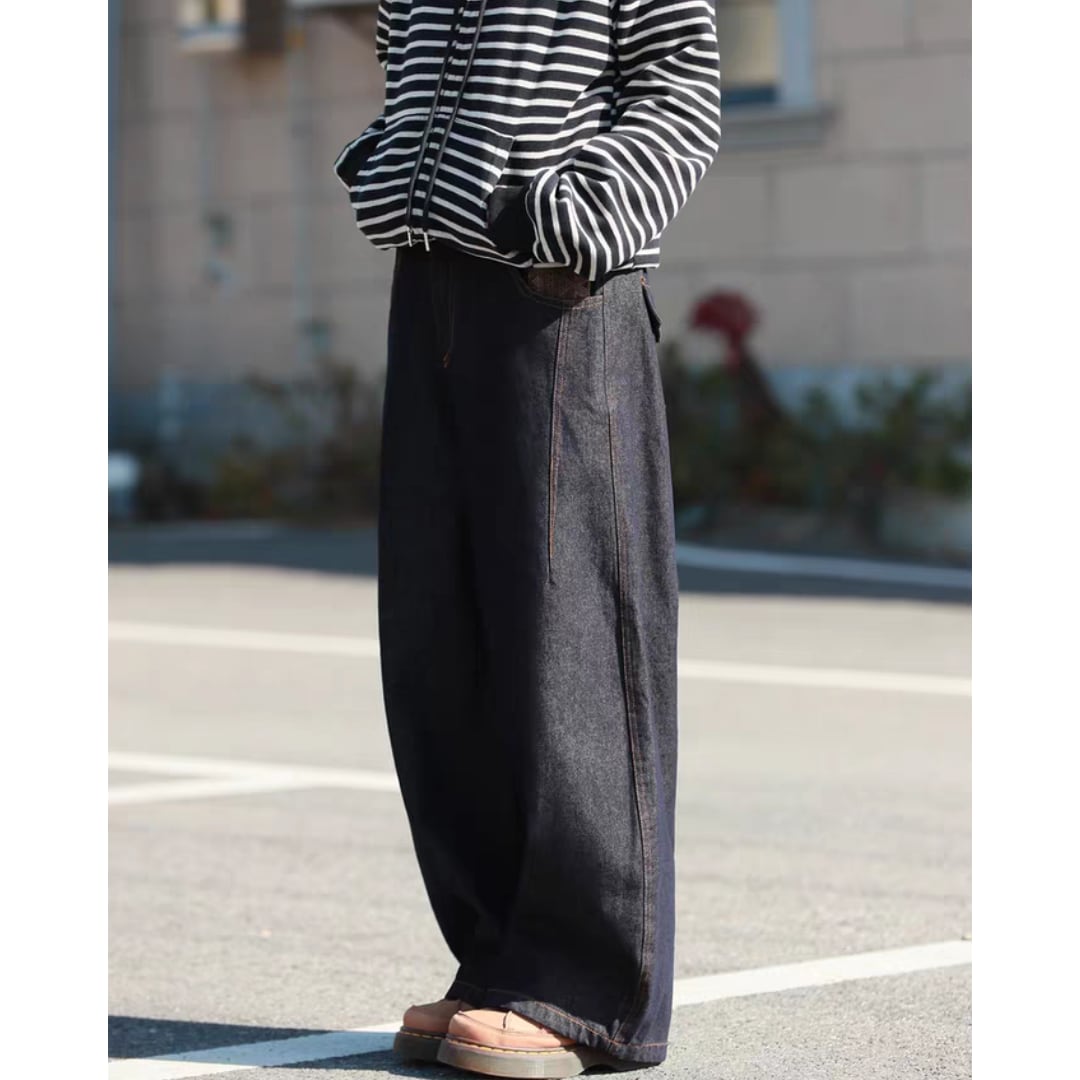 ワイドシルエットのリラックスパンツ。