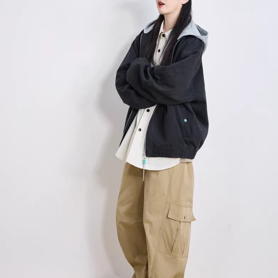 フードレイヤード アウトドアジャケット