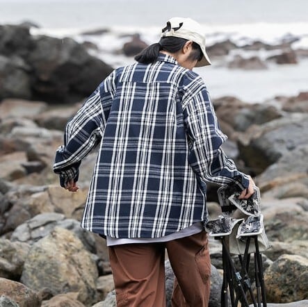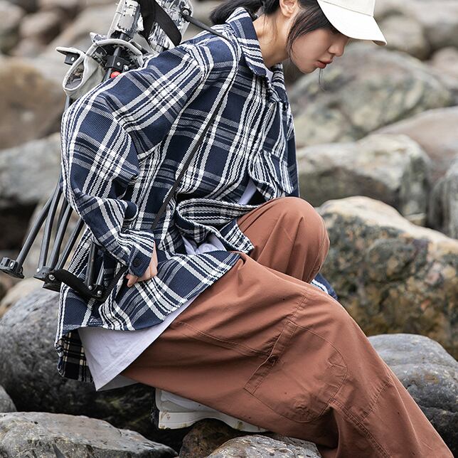 【UNISEX】アメリカンレトロ チェック柄長袖シャツ