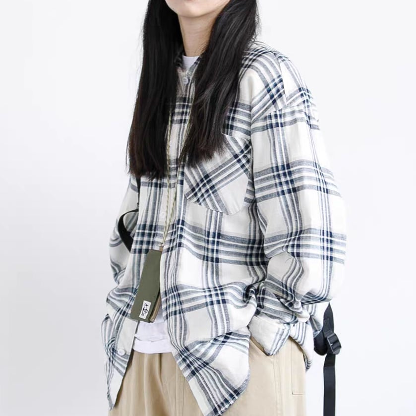 【UNISEX】ルーズチェック柄長袖シャツ