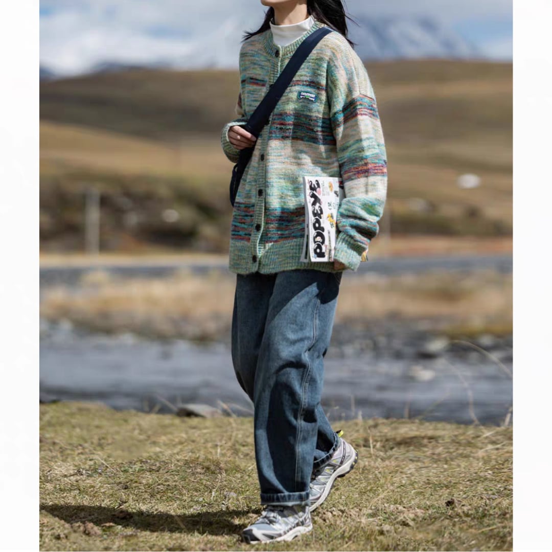 ニュアンスカラーのミックス編みが魅力のニットカーディガン。