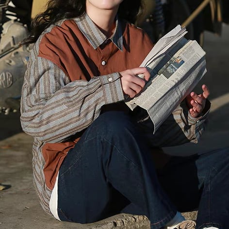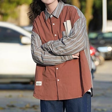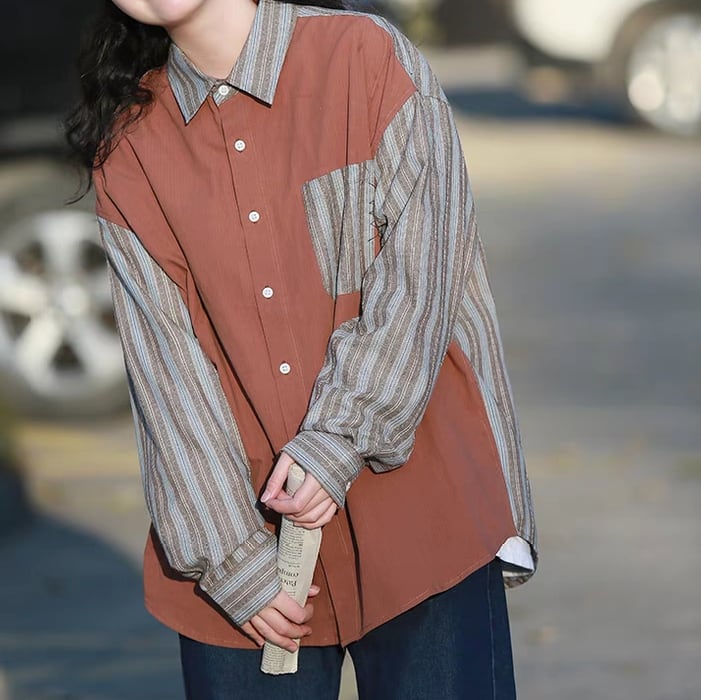 ストライプデザイン長袖シャツ