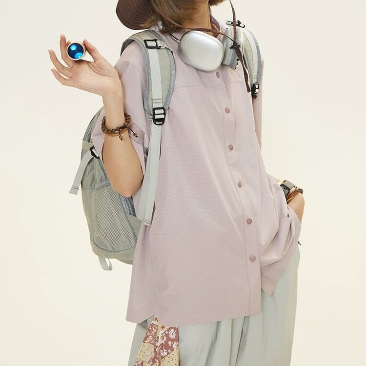 バンドカラー半袖シャツ