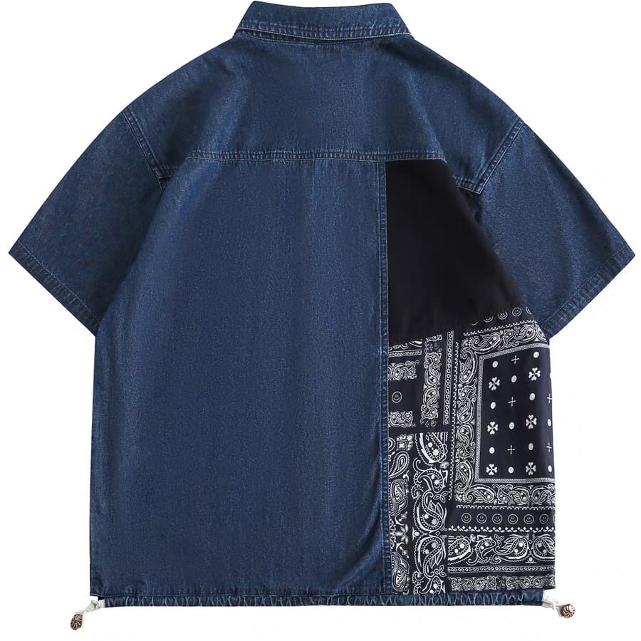 裾ドローコードペイズリーデニムシャツ