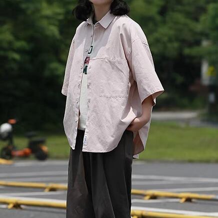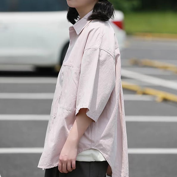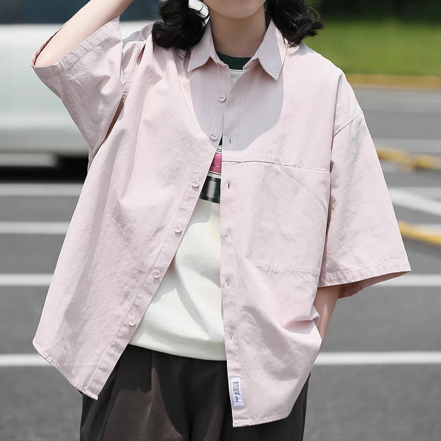 デザインポケット付きシンプル半袖シャツ