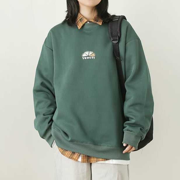 ピザプリントラウンドネックプルオーバー