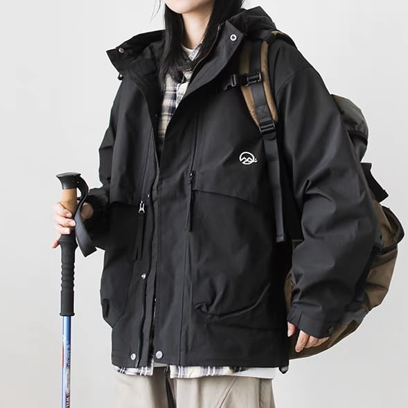 防風性能を備えたアウトドアフード付きジャケットは、ゆったりとしたシルエットが特徴。デイリーユースはもちろん、アウトドアシーンでも大活躍します。